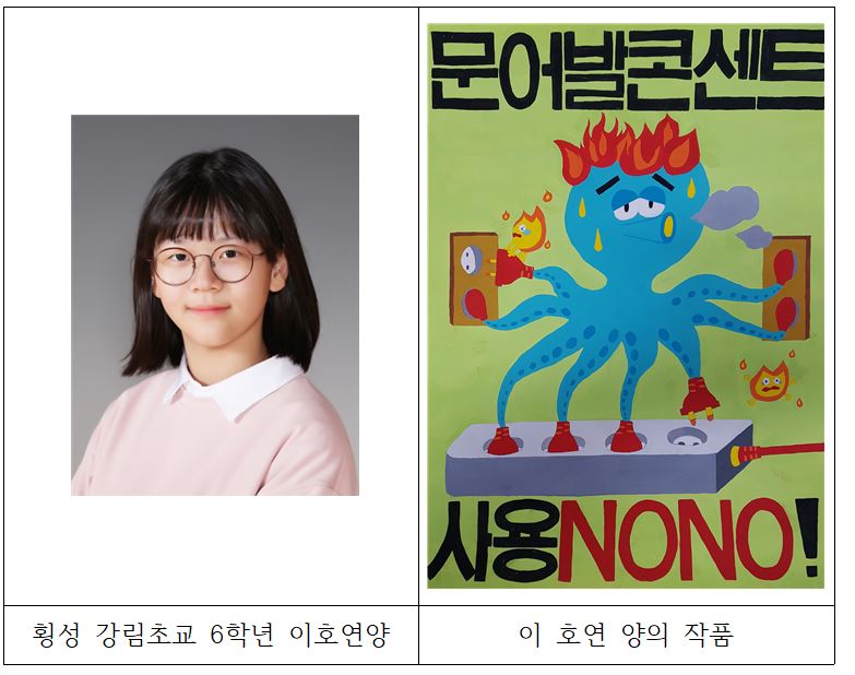 이호연양의 작품은 우리가 알고 있는 문어발식 콘센트의 위험성을 그림으로 표현한 아이디어와 강한 전달력이 심사에서 높은 평가를 받았다.