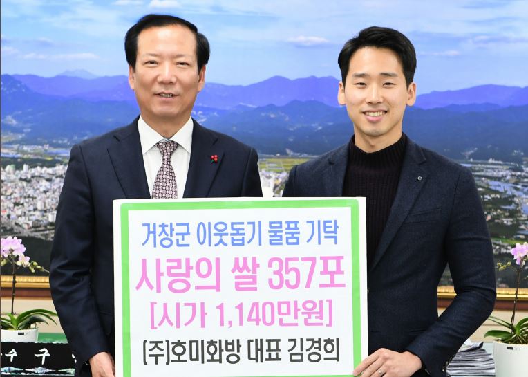 출향향우 ㈜호미화방 김경희 대표 1천만원 상당 쌀 거창군 기탁정호 기자 / |