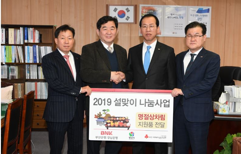 BNK금융그룹 연말 이웃돕기 2천만원상당 성품 전달- 명절 상차림 지원물품(떡국 부식세트) 400박스(금20,000,000원 상당)-박권목 기자 / |