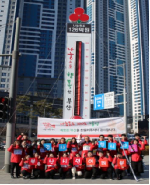희망 2019 나눔캠페인, 73일 간의 뜨거운 여정 - 부산 사랑의 온도♥ 100도 달성!◈ 부산시․부산사회복지공동모금회, 2018. 11. 20.~2019. 1. 31. 73일간 ‘희망 2019 나눔캠페인’전개 ◈ 126억 원 목표로 시작해 모금 마지막 날 100도(126억 원) 달성, 전년 대비 7% 증가정민권 기자 / |