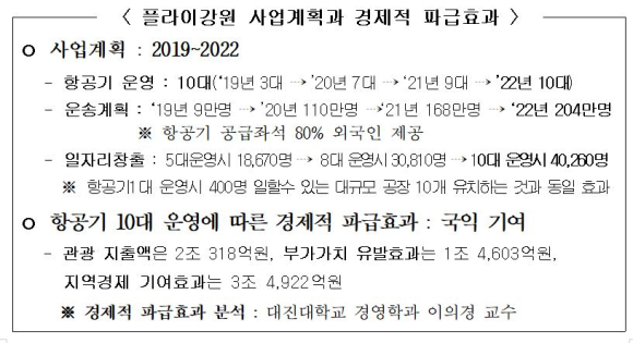 〈 플라이강원 사업계획과 경제적 파급효과 〉