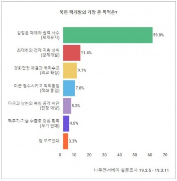 나우앤서베이 설문 “북한 핵개발 주목적은 체제유지, 완전한 비핵화 의지는 거의 없어”