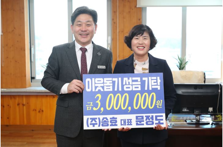 고성 회화면 ㈜송효 문정도 대표, 이웃돕기 성금 기탁정유근 기자 / |
