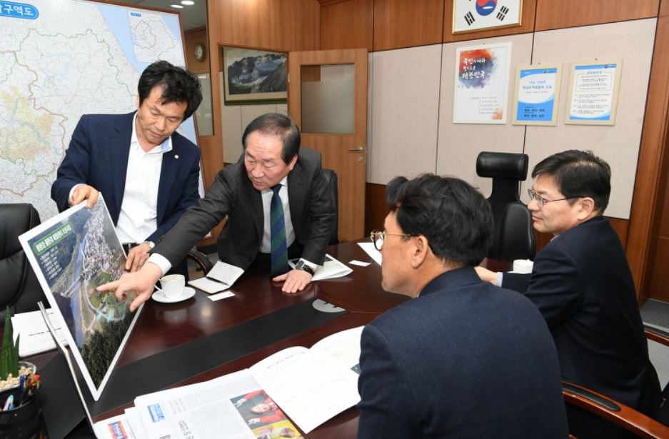 한왕기 평창군수, 한강유역환경청에 “2020년도 친환경 청정사업” 공모사업 지원 건의- 4일 군 평창강 물환경 체험센터 조성사업 위해 한강유역환경청장 면담정민권 기자 / |