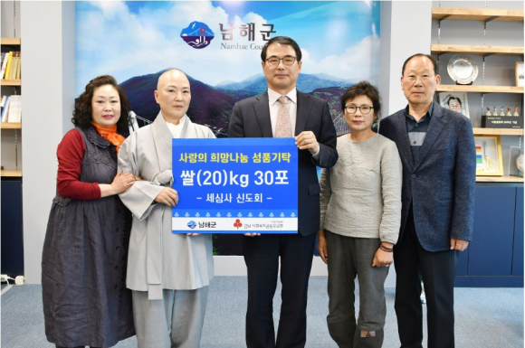 남해군, 어려운 이웃 위한 사랑이 쌓인다세심사 신도회, 이웃돕기 쌀 600kg 기탁정민권 기자 / |