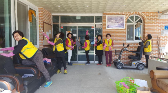 | □ 고향을 생각하는 주부모임 진부분회 노인회관 청소 ○ 어제(4.17.) 고향을 생각하는 주부모임 진부분회(분회장 원영숙)는 봄을 맞이하여 진부면 노인회관의 대청소를 실시하였음.