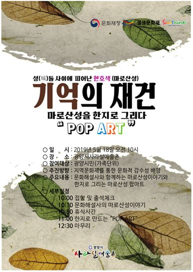 광양시, ‘생생문화재’ 기억의 재건 마로산성을 한지로 그리다- ‘산성, 기억의 재건’ 문화예술체험 프로그램 매월 1회 토요일 운영 -정유근 기자 / |