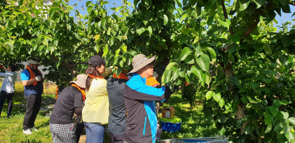 가장 먼저, 주관부서인 농정국 직원 25명은 지난 23일(목) 양양군 서면 과수농가를 방문하여 배 과실솎기 작업에 구슬땀을 흘렸다.