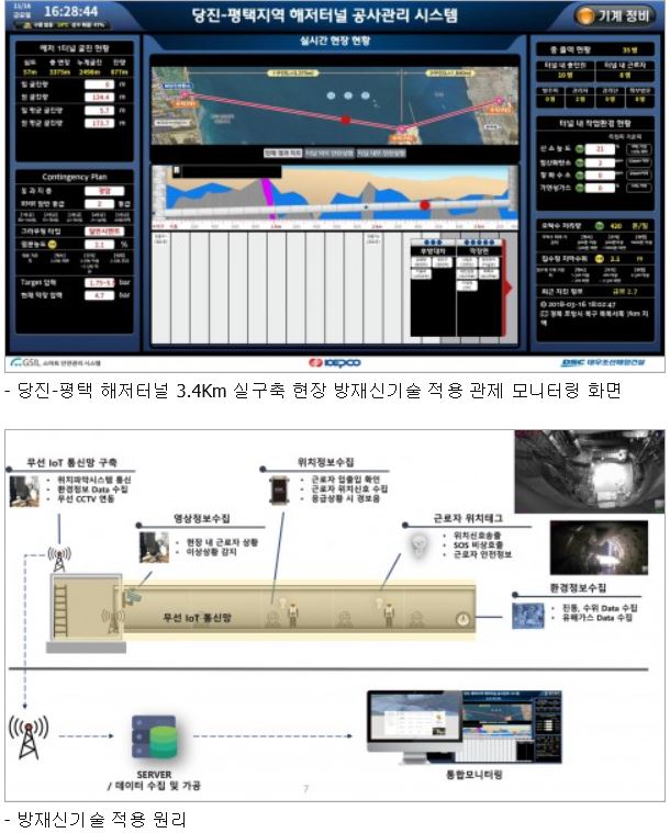 IoT를 이용한 RTLS 재난안전 시스템은 터널 및 밀폐구조물 건설현장에서 근로자의 실시간 위치파악은 물론 진동, 수위, 유해가스 등 현장 위험환경 요소를 실시간으로 파악할 수 있는 기술이다. 재난 발생 시 위험정보전달과 근로자 SOS 신호 발생이 가능하다. 재난 발생 후 밀폐공간 내 통신, 전력공급이 중단됐을 경우에도 현장 근로자의 마지막 위치 파악을 할 수 있다.