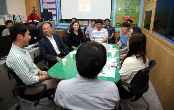 최문순 도지사, 산불 상황근무로 애쓰는 직원들 격려정유근 기자 /