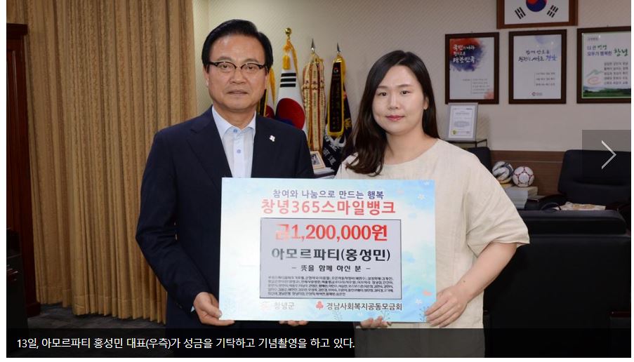 아모르파티 홍성민 대표, 어려운 이웃돕기 성금 기탁= 인스타그램으로 천연비누 할인판매 후 수익금 전액 기탁 == 창녕365스마일뱅크로 기탁해 복지위기가구 의료비 등 지원 = 정유근 기자 / |