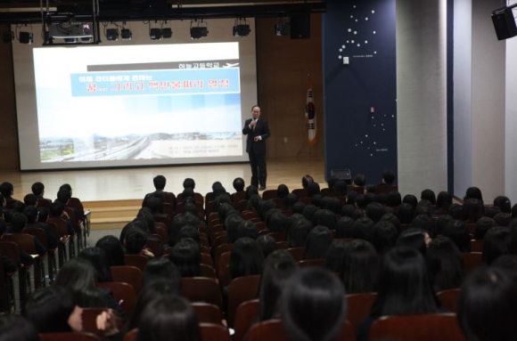 이 날 장학금 전달식에 참석한 인천공항공사 구본환 사장은 “故 이채욱 사장님은 재임시절 탁월한 경영능력과 리더십을 바탕으로 인천공항을 명실상부한 세계 최고 공항으로 성장시키셨으며, 후배들에게 긍정적인 마음가짐과 열정적인 태도의 가치를 일깨워 주셨다”며 “하늘고등학교 학생들이 故이채욱 사장님의 평소 행적과 뜻을 받들어, 긍정적인 마음가짐과 열정적인 태도를 갖춘 훌륭한 인재로 성장해 주기를 바란다”고 말했다. |