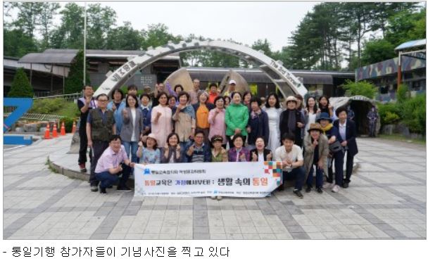 2019년 6월 25일 (뉴스와이어) -- 통일교육협의회(상임의장 송광석, 이하 협의회) 여성분과(위원장 이석자)는 6월 18일 캠프그리브스(경기도 파주시 군내면 소재)에서부터 시작해서 제3땅굴, 도라산역, 도라전망대를 탐방하는 통일기행을 개최했다. 이번 행사는 (사)통일교육협의회가 주최하고 통일교육협의회 여성분과위원회가 주관, 통일부 통일교육원이 후원했다. 2019 통일교육협의회 여성분과 통일기행은 40여명의 여성통일활동가들이 참여한 가운데 ‘생활 속의 통일’이라는 주제발표와 체험중심적인 통일기행으로 진행하였다.
