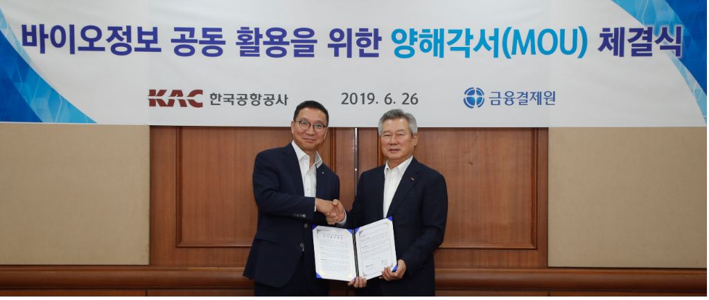 한국공항공사, 금융결제원과 바이오정보 공동활용 업무협약 체결- 금융권 바이오정보를 공항 신분확인 수속간소화에 활용김윤국 기자 / |