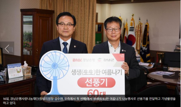 2019년 경남은행사랑나눔재단 【생생(生生)한 여름나기 선풍기 】 나눔 행사 실시= “선풍기로 시원한 여름 보내세요” =정유근 기자 / |