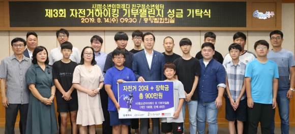 충주시 친구청소년쉼터, 자전거하이킹 기부챌린지 성금 기탁김철상 기자 / |