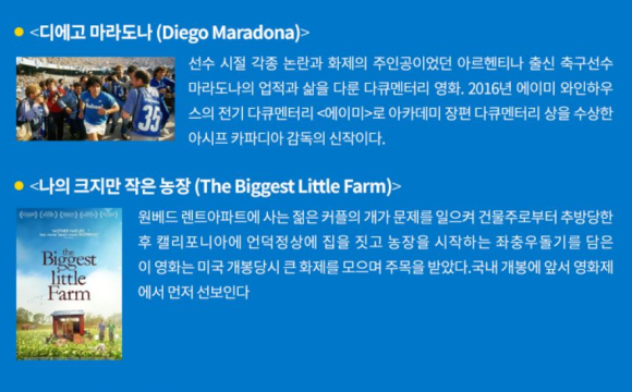 작품 편수의 증가 뿐 아니라 한국사회의 다양한 면을 포착해내어 안정적인 완성도를 자랑하는 한국다큐멘터리의 현재를 확인 할 수 있는 장이 될 것이다.