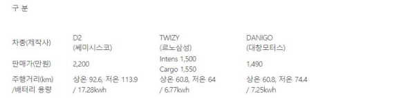 * 초소형전기차 D2의 경우, ’17년 상반기 기준, 닛산 리프, 테슬라 모델S․X에 이어 판매 세계 4위