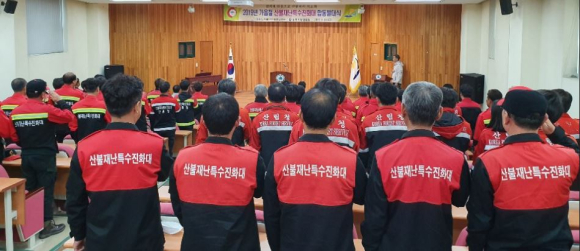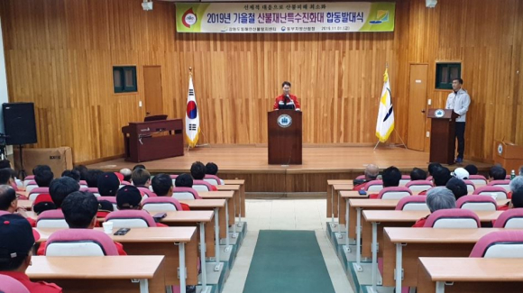 강원도동해안산불방지센터(소장 소기웅)와 동부지방산림청(청장 최준석)은 11월 01일 강원도립대학교 산학협력단 강당에서 “산불재난특수진화대 합동발대식”을 갖고 본격적인 가을철 동해안 산불방지체계에 돌입했다.