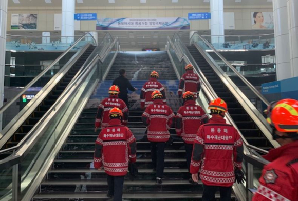 이후 특수대원들은 공항 내 항공유를 저장하는 위험물 옥외저장소와 공항터미널 내 경보설비 등 소방시설을 점검했으며, 추가로 일반국민이 바로 사용하는 자동심장 충격기도 확인했다.