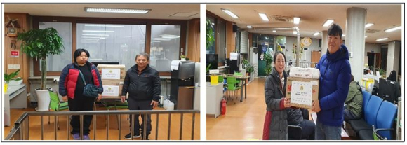 | □ 바르게살기대화면협의회 다자녀가구 지원 물품 기탁 ○ 어제(11.26.) 16:00 바르게살기대화면협의회(회장 이영식)에서는 기저귀 3박스를 다자녀 2가구에 전달해 달라며 대화면사무소에 기탁하였음.