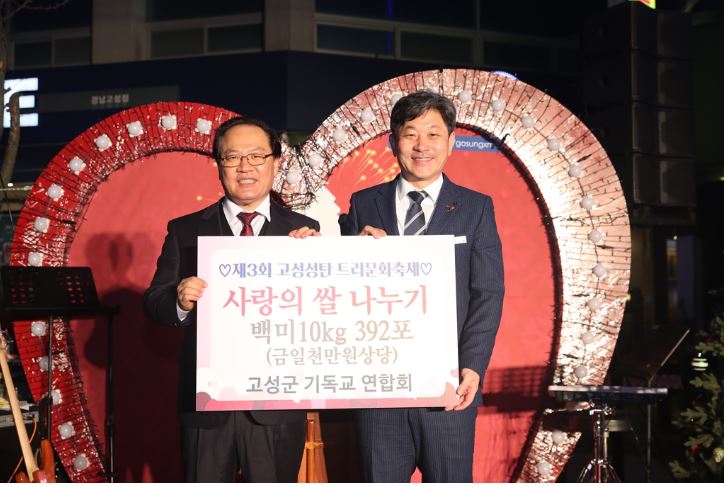 고성군기독교연합회, 사랑의 쌀 나눔- 사랑의 쌀 10kg 392포(금1,000만원상당) 기탁정유근 기자 / |