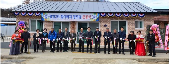 한편, 봉양2리 박명교 이장은“그 동안 봉양2리에는 할머니 경로당만 있어, 남자 어르신들이 봉양1리 할아버지 경로당을 이용하며 많은 불편을 겪어왔는데 이번 경로당 준공으로 훌륭한 휴식공간이 생기게 되어 기쁘고, 아울러 아낌없는 지원을 해준 군청 및 여러 관계자들에게 감사하다”고 소감을 전했다.