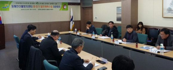 강원도동해안산불방지센터(소장 소기웅)는 12월 2일 주문진읍사무소 소회의실에서 “동해안산불방지센터 2040 중장기 발전계획 수립”과 관련 전문가 자문회의를 개최하였다. 이날 강원도청, 산림청, 동해안 6개시·군 산림부서 과장급 공무원과 강원대학교 산림환경과학대학 채희문 교수, 산불방지협회 김병기 강원지회장, 산불방지정책연구소 황정석 소장 등 내·외부 전문가 14명이 참석한 가운데 중장기 발전계획(안) 발표와 자문위원 토의 및 의견수렴 순으로 진행되었다.