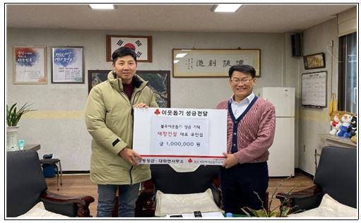 ○ 어제(12.10.) 대화면 태창건설(대표 유인섭)에서 희망2020 나눔캠페인 모금활동으로 성금 100만원을 대화면사무소에 기탁함.