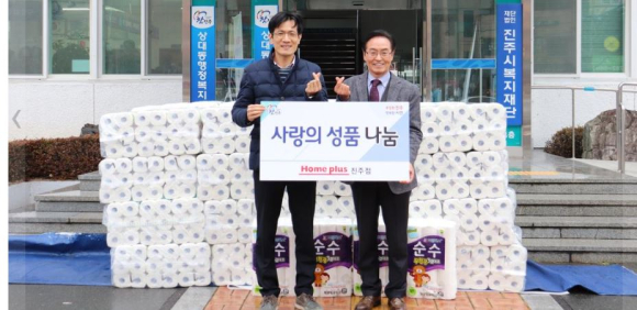 홈플러스 진주점, 진주시복지재단에 물품 기탁- 노인복지시설에 물품 기탁 -정호 기자 / |