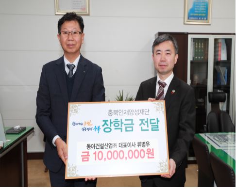 동아건설산업, 충북인재양성재단에 1,000만원 기탁내용정호 기자 / |