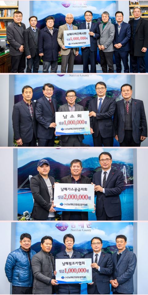 추위도 녹이는 남해군 향토장학금남해지역건축사회 500만원, 남해가스공급자회 200만원,남해군펌프카협회 100만원, 남소회 100만원 정민권 기자 / |