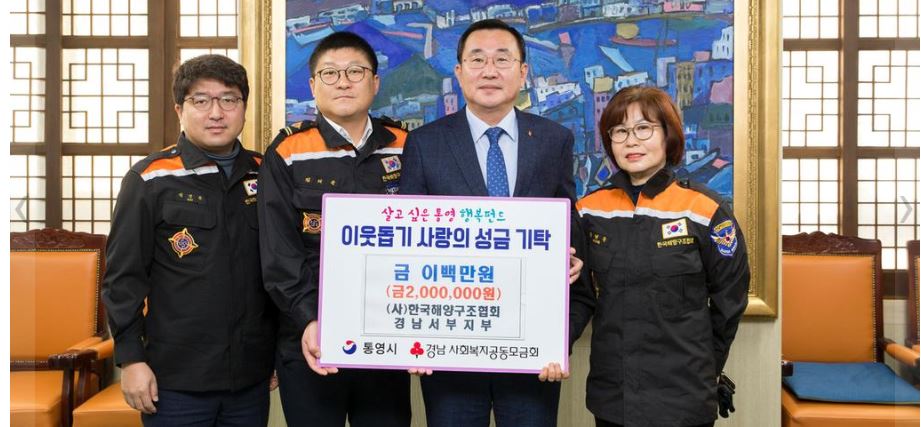 통영시 (사)한국해양구조협회 경남서부지부 성금 기탁정유근 기자 / |