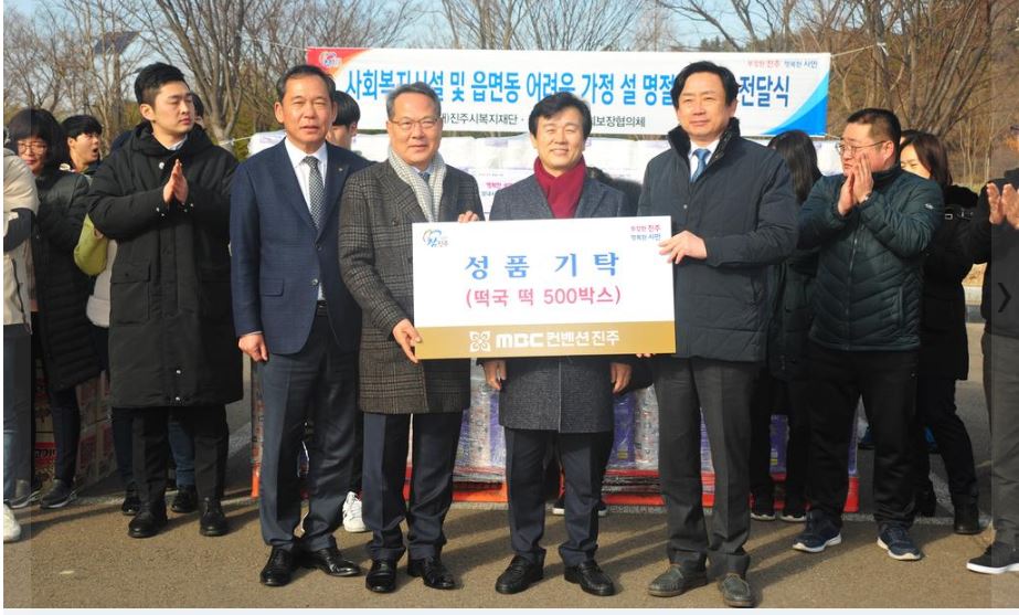 MBC컨벤션진주, 진주시복지재단에 성품 기탁- 나눔 문화 확산 위한 설 명절 위문으로 떡국 떡 500박스 전달 -정호 기자 / |