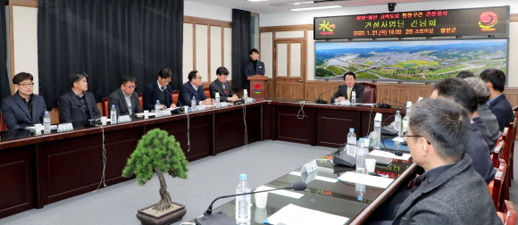 | 문준희 군수는 “지역경제 활성화를 위해 전문건설업, 조경수, 건설기계, 건설자재, 식당이용 등 합천군 관내 인적․물적 자원 활용을 좀 더 적극적으로 사용해줄 것”을 당부했다. 사업단 관계자는 “합천군이 원만한 고속도로 사업추진이 될 수 있도록 각종민원 해결, 보상협의 업무지원, 사업추진에 따른 각종 행정절차, 관계기관 협의 및 인․허가에 도움을 줄 것”을 부탁했다.