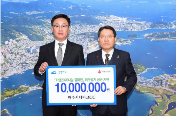 여수시티파크, 이웃돕기 성금 1000만원 전달해-「희망2020 나눔캠페인」기탁, 저소득층을 위해 따뜻한 손길 나눠김철상 기자 / |