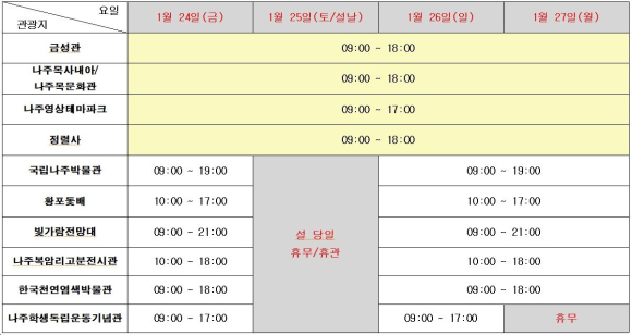 올해 설 연휴는 호남 역사문화중심지 나주 관광으로설 당일 일부 제외, 황포돛배․빛가람전망대․국립나주박물관 등 정상 운영박권목 기자 / |