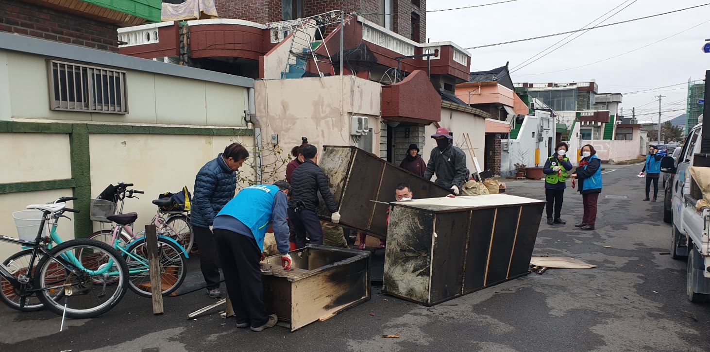 | 참여 단체들의 적극적인 복구활동으로 1톤 트럭 3대 분량의 쓰레기를 청소했으며, 건물주는 “그렇지 않아도 어떻게 치워야할지 막막했는데 정말 고맙고 피해가 크지만 인명피해가 없어 천만다행이다. 앞으로 도움이 필요한 곳이 있다면 본인도 앞장서서 도움을 주겠다” 감사를 표했다. 최병한 황오동장은 “화재 피해복구에 적극적으로 참여한 시의원과 각 단체 회원들에게 깊은 감사의 뜻을 전하며, 피해를 입은 기초생활보장수급자 가구에 생필품을 전달하고 더 필요한 물품은 없는지 세심하게 챙기겠다” 고 말했다. |
