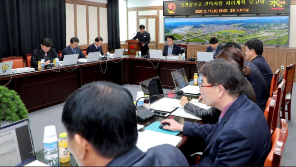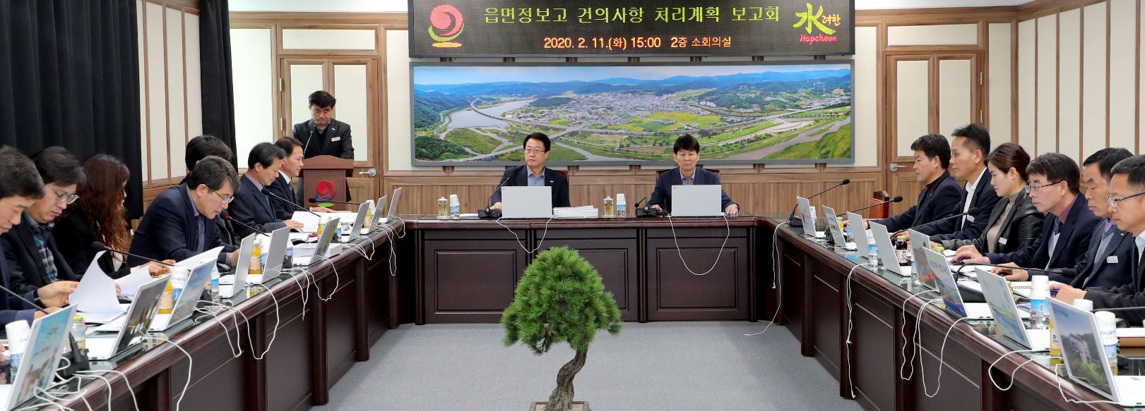 합천군은 11일 오후 3시 군청 소회의실에서 ‘2020 읍면정보고 및 군민과의 대화의 시간’ 건의사항에 대한 처리계획 보고회를 개최했다고 밝혔다.