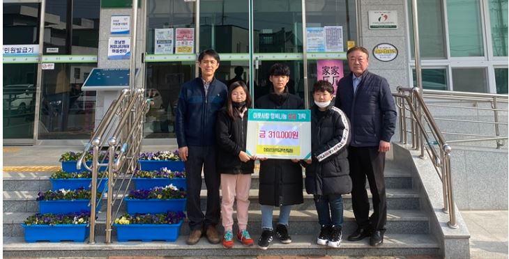 고성군 회화면 회회초등학교학생 일동, 이웃돕기성금 31만원 기탁정유근 기자 / |