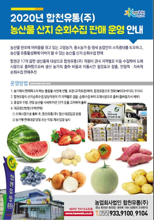 합천군, 농산물 산지 순회수집 판매 지원 실시농업인 편의 제공을 위해산지 농산물 순회수집 차량 운영 및 일자리 창출 박권목 기자 / |