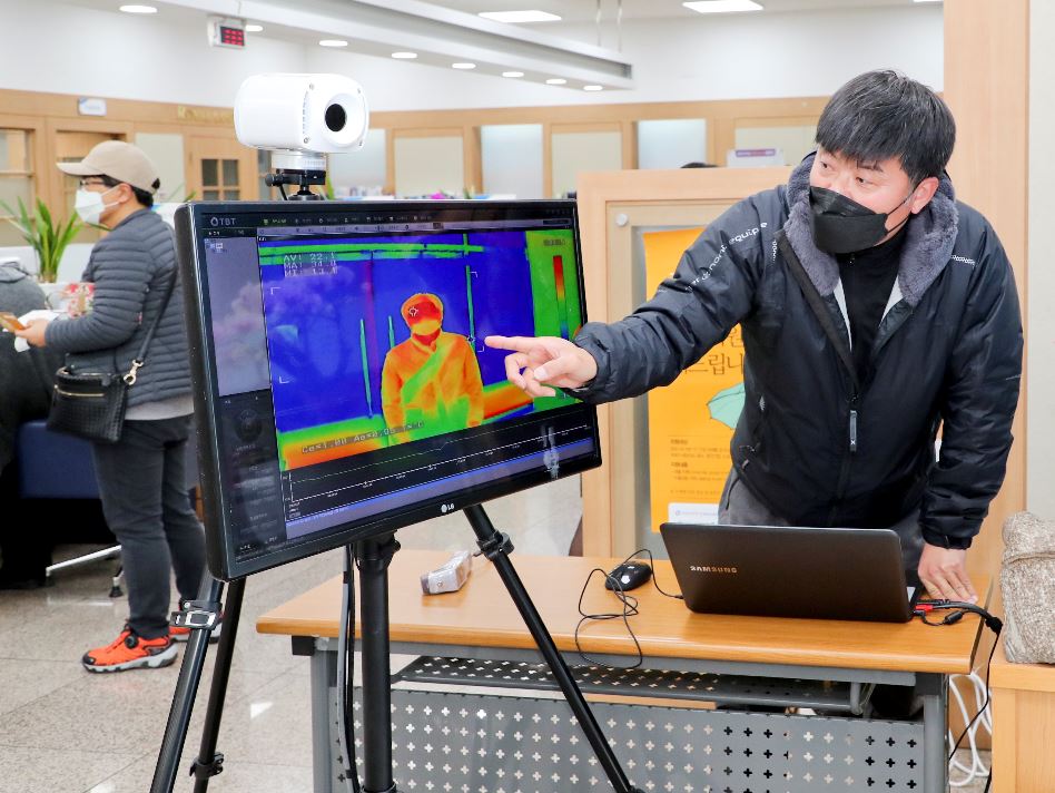 열화상카메라는 적외선을 이용해 피사체의 열 분포도를 측정할 수 있는 장비로써 최근 코로나 사태가 확산됨에 따라 버스터미널과 같은 다중집합장소에서 이용자들의 발열 상태를 점검하기 위해 설치되고 있다.