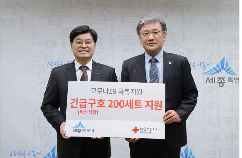 코로나19 자가격리자에 긴급구호물품 전달- 5일 대한적십자사 대전·세종지사 주관·금성백조 후원 마련 -박권목 기자 / |