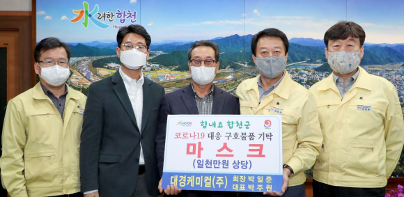 대경케미컬(주) 회장 박일준, 대표 박주원코로나 19 극복 1천만원 상당 마스크 기탁박권목 기자 / |