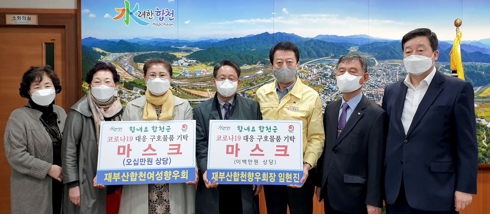 임현진 재부합천향우회장, 재부합천여성향우회 합천군에 250만원 상당 마스크 기탁박권목 기자 / |