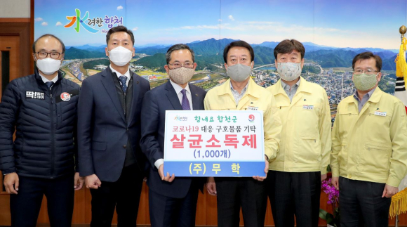 ㈜무학, 코로나 19 극복 500ml 살균소독제 1,000개 기탁박권목 기자 / |