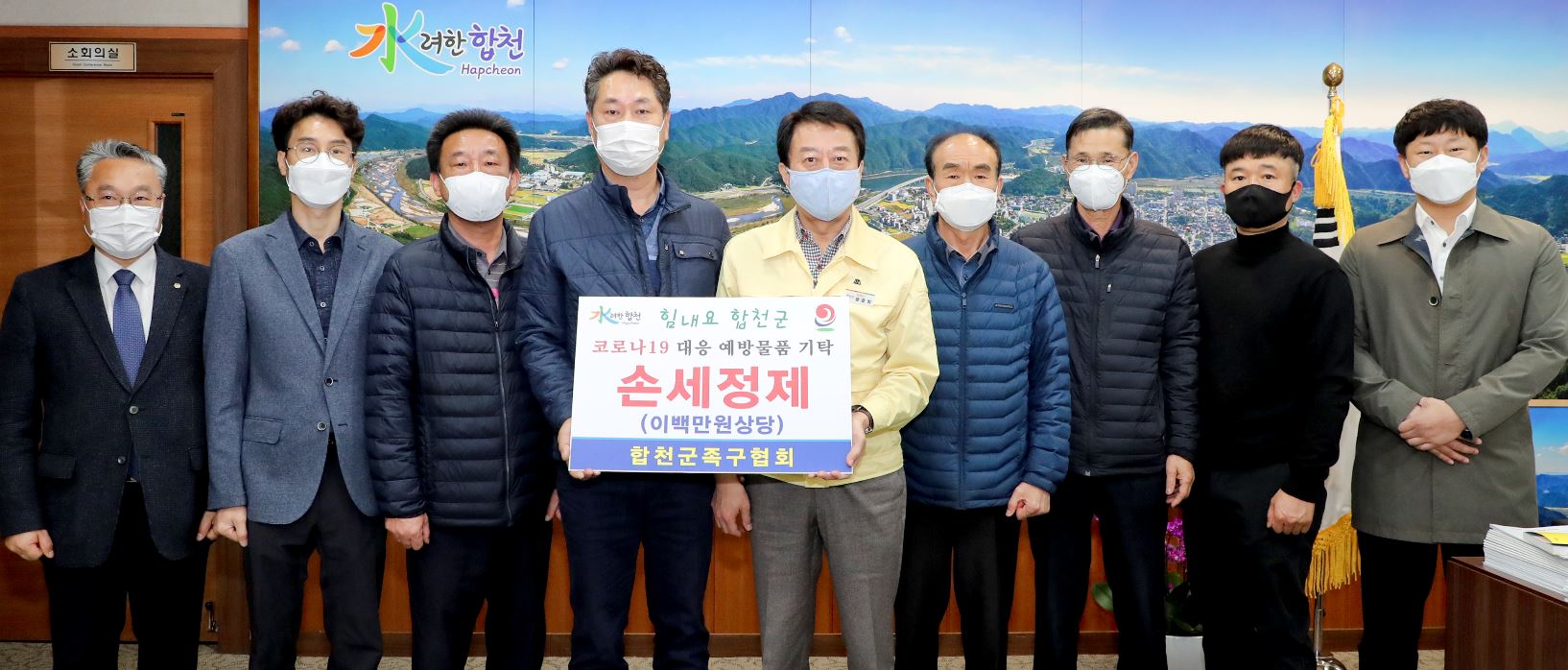 합천군족구협회, 코로나19 극복 200만원상당 손소독제 기탁박권목 기자 / |