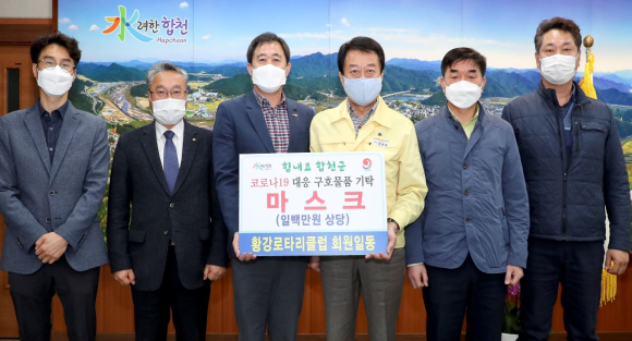 황강로타리클럽 회원일동 코로나19 대응 1백만원 상당 마스크 기탁박권목 기자 / |