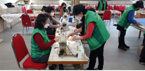 재봉틀로 한 땀 한 땀…수제 면 마스크 5000개 성남시에 맡겨성남시새마을부녀회 등 70명 봉사자 “코로나19 함께 이겨내요”박권목 기자 / |