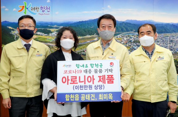 합천읍 공태건․최미옥 2천만원 상당 아로니아 건강보조식품 기탁코로나19 극복을 위한 면역력 취약계층 건강제품 전달박권목 기자 / |